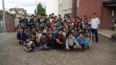 ゆりあげ小学校でパフォーマンス後・・記念撮影。