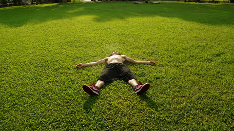 日焼けで大の字で寝てます。