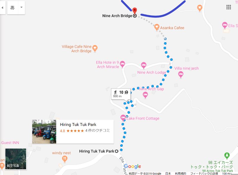 「Tuk Tuk Tours Ella」とGoogleMapで検索してそこから徒歩10分で線路に到着します。