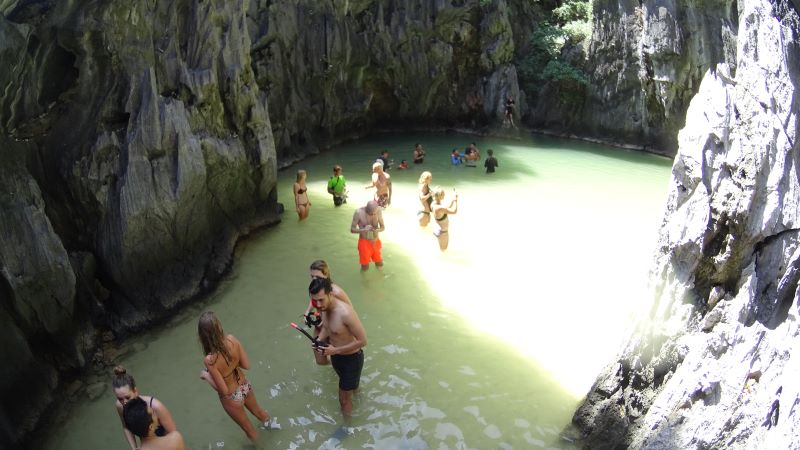 ・岩に囲まれたラグーンで遊泳